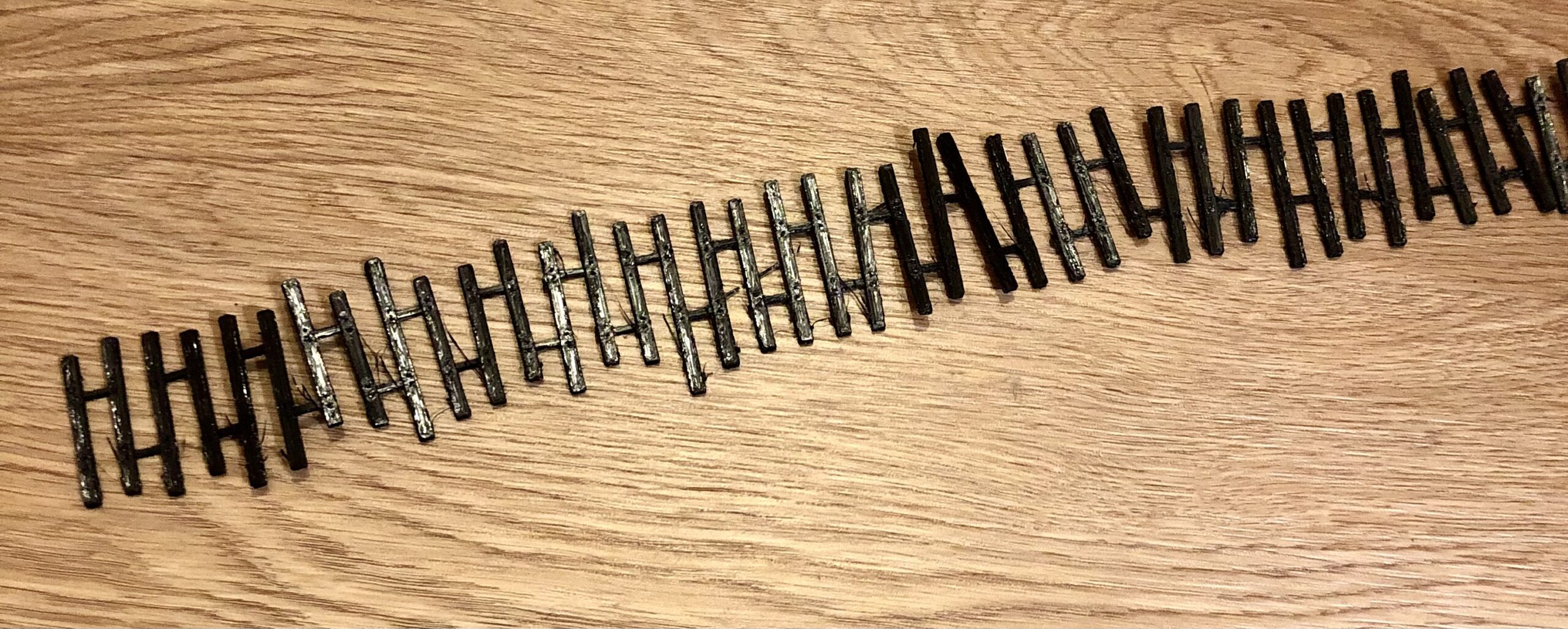 All Nation On3 Flex Ties With Spike Holes For Branch Line Code 70 Narrow Spike Holes 3D Printed (19.5″ Section)PN#633AN |